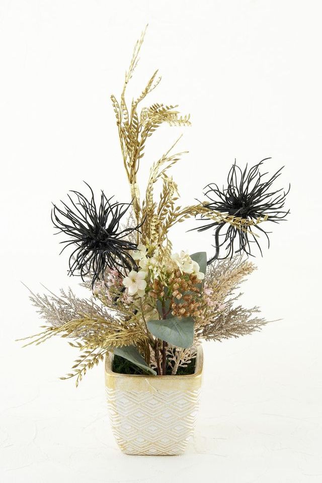 シックカラーとゴールドの組み合わせが素敵な造花アレンジメント。