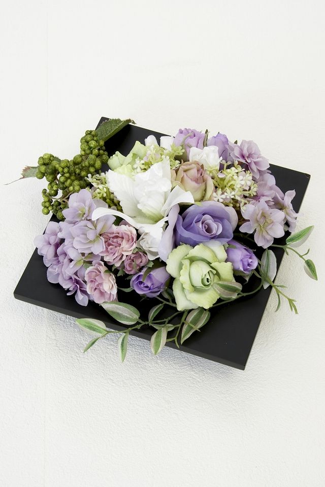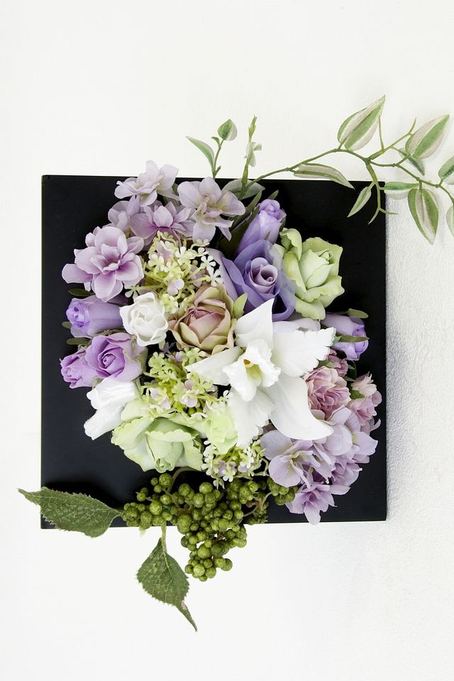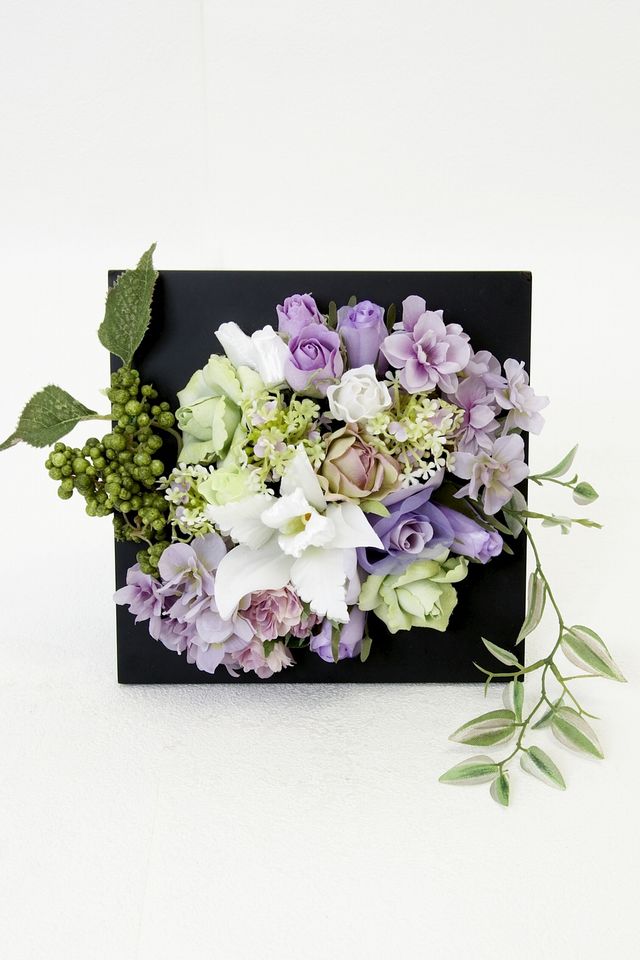 置いても壁に掛けても飾れる造花のスクエアフレームアレンジメント!