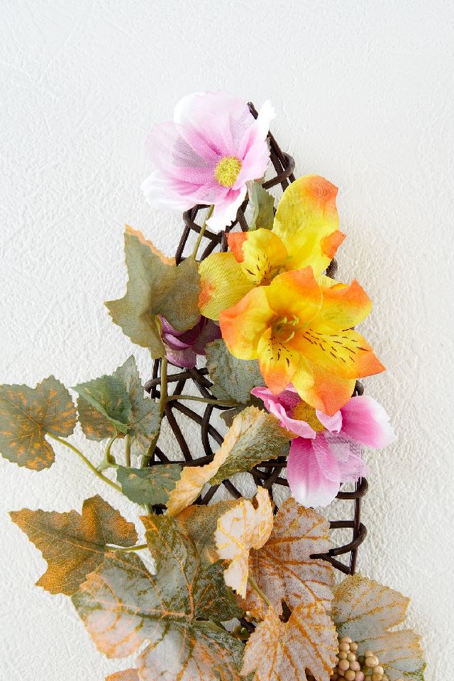 自然な雰囲気の造花壁掛けアレンジメントで様々なお部屋のタイプにマッチします。