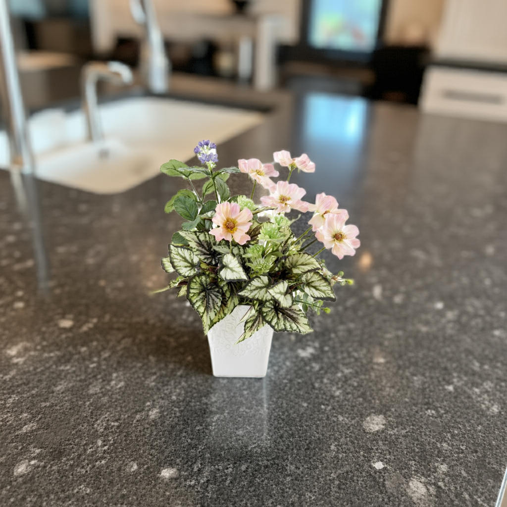 自然な雰囲気の可愛らしい造花のナチュラルアレンジメントです。
