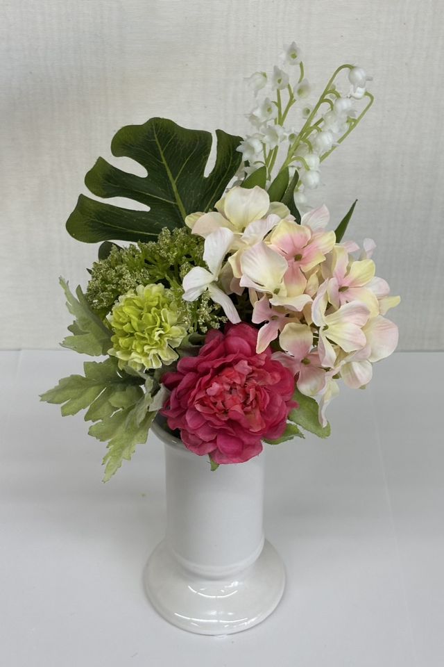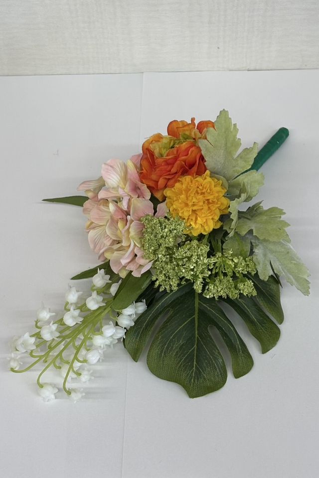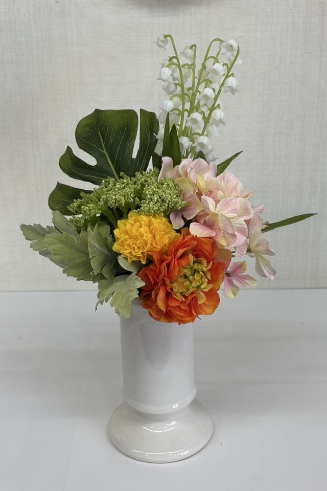 花材:造花・アーティフィシャルフラワー・スズラン・ラナンキュラス・マム・ハイドレンジア・モンステラ・小花・葉類・その他