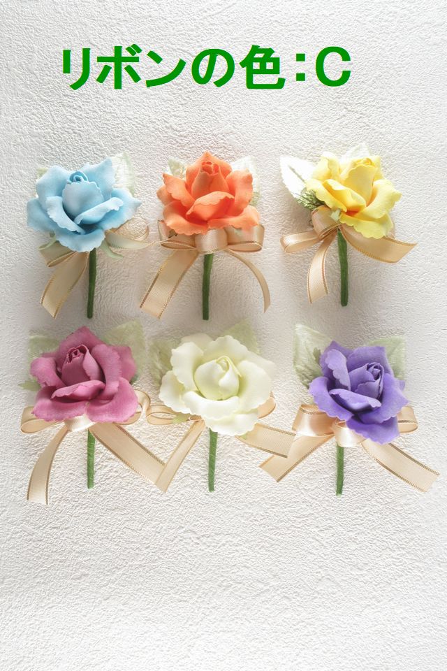 リボンのカラーは3タイプ。リボンカラーごとにお花の色は、それぞれ6色ずつございます。