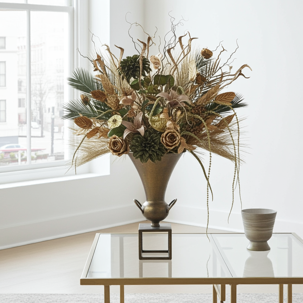 インテリアとしてドラマチックに暮らしを彩るプレミアムな造花アレンジメントです。