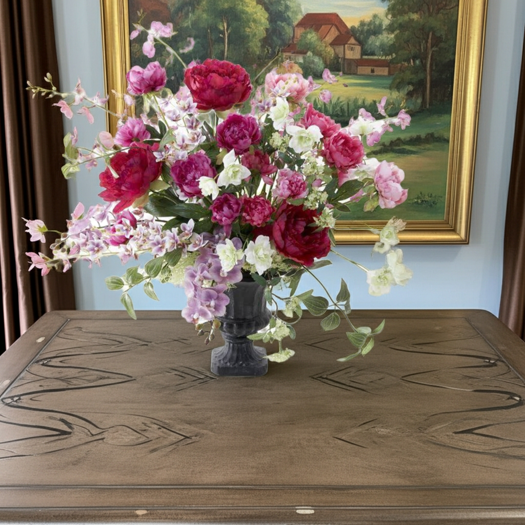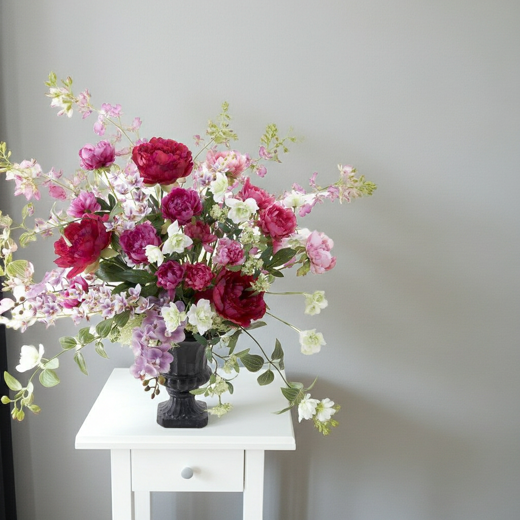 優美で高雅なアーティフィシャルフラワーアレンジメント。