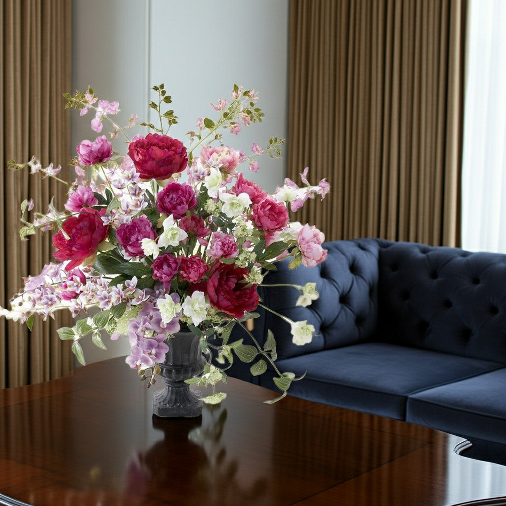 インテリアとしてドラマチックに暮らしを彩るプレミアムな造花アレンジメントです。
