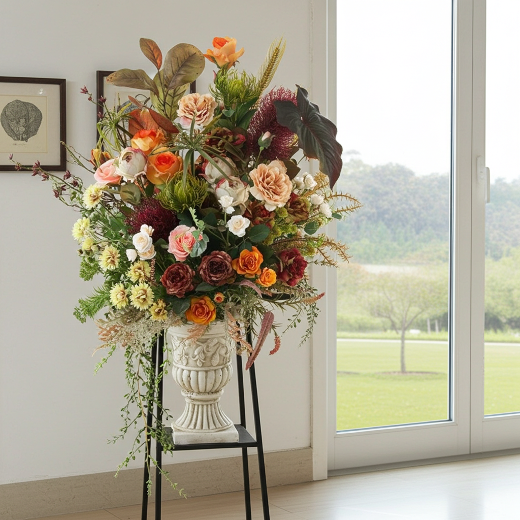 優美で高雅なアーティフィシャルフラワーアレンジメント。