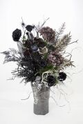 使用花材:ハイドレンジア・黒薔薇・バラ・カーネーション・ラナンキュラス・ブラックローズ・ベリー・小花・枝・木・葉類・その他