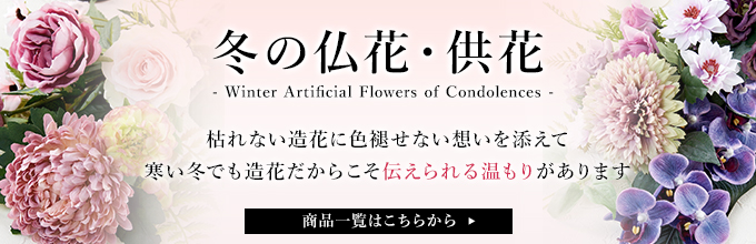 ハイセンスで枯れない造花供花。花瓶等に挿すだけで簡単に飾れずっと華やかさが保てます。