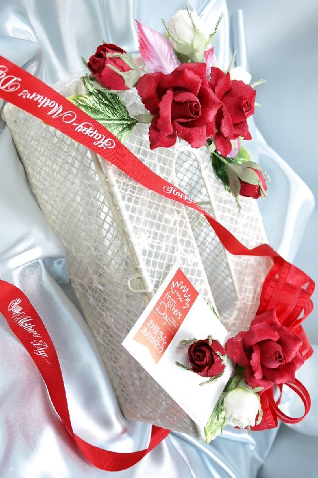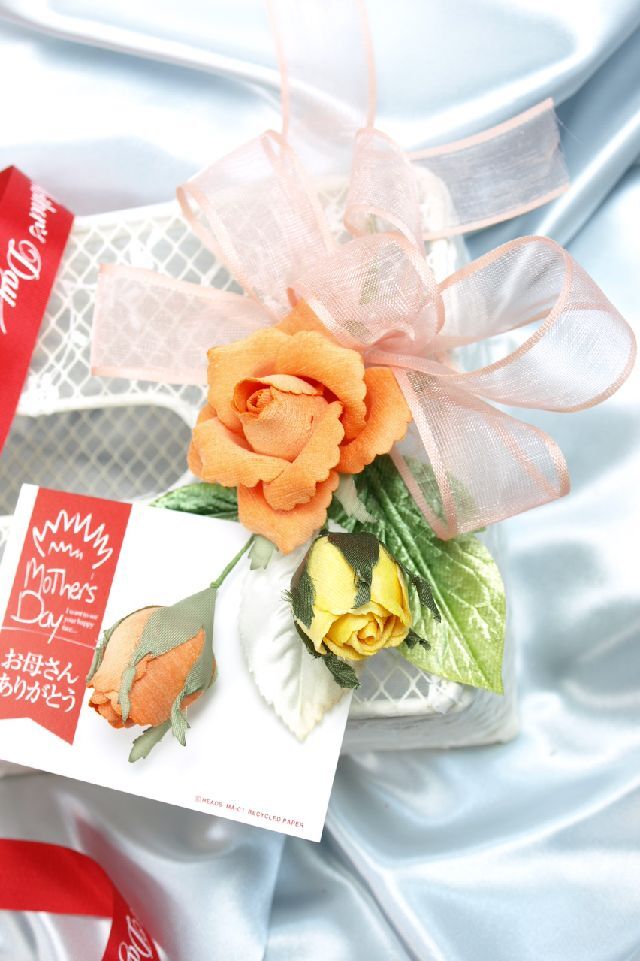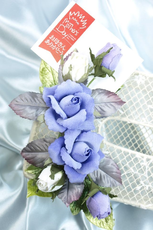 | 使用花材 | 【造花】アートフラワー(ベルベットローズ・バラ蕾・リーフ) ※母の日ラッピングやメッセージカードも無料でお付けします。 |